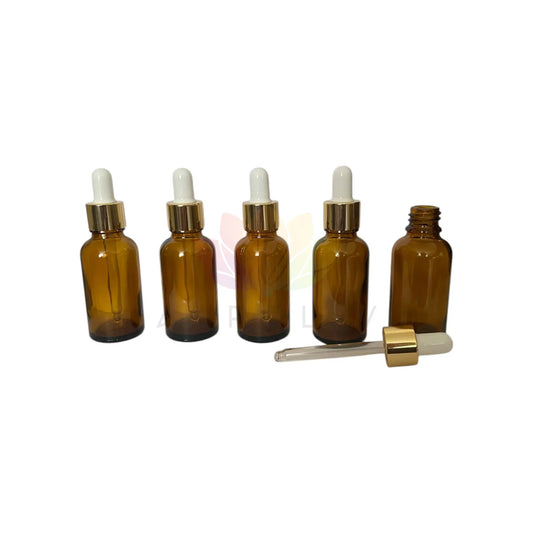 Pack gotario 30ml ámbar tapa dorada gotero blanco