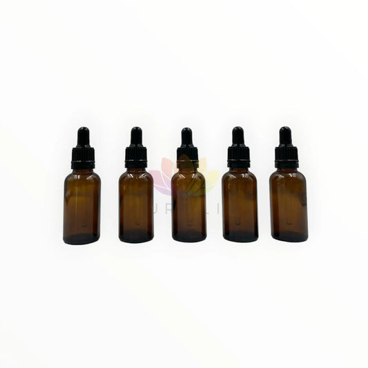 Pack válvula 30ml ámbar vidrio grueso tapa negra