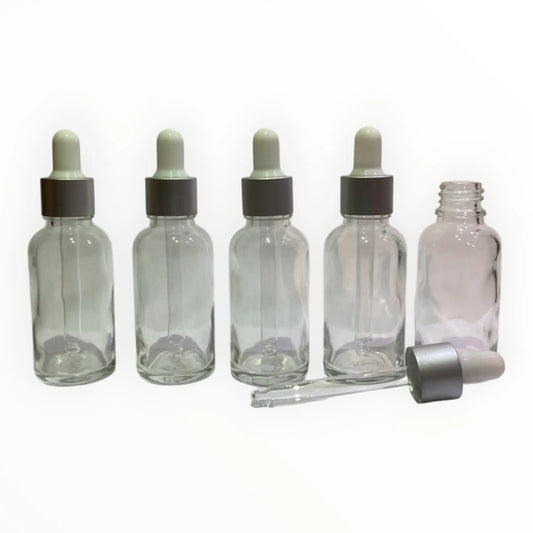Pack gotario 30ml transparente tapa plateada gotero blanco